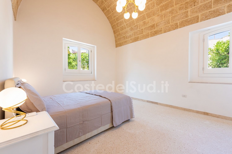 Pubblicazione giugno 2025. A breve pubblicazione di altre foto del corredo a bordo piscina ( lettini prendisole). Villa con piscina esclusiva. Si tratta di un immobile ristrutturato, dimora storica , nel centro di Patù. Rifiniture di pregio e tanta attenzione ai particolari. Gli esterni sono stati gestiti in modo da non stravolgere la sua storicità. La piscina è esclusiva , giardino ampio , con alberi da frutto ed orto. Grande patio a bordo piscina coperto con canne di bambù. Gli interni sono con volte a stella , lavorati da artigiani locali con sapienza ed esperienza , interni ariosi e molto ampi. . Soggiorno con cucina , 2 camere da letto matrimoniali , dove all'occasione è possibile aggiungere un comodo letto singolo per ognuna, per un massimo di 6 posti letto, inoltre, le camere hanno in dotazione ampi e capienti armadi. Bagno completo disimpegnato , con tutti i sanitari e grande box doccia. 2 posti auto privati. Le camere ed il soggiorno sono climatizzati autonomamente. Misure della piscina, 7x3 profondità m 1,40. A piedi e' possibile raggiungere esercizi commerciali. Ottima posizione per le spiagge di sabbia di Pescoluse e le scogliere ed il mare sulla costa adriatica. A pochi minuti in auto da Leuca.