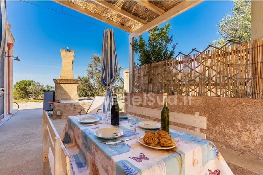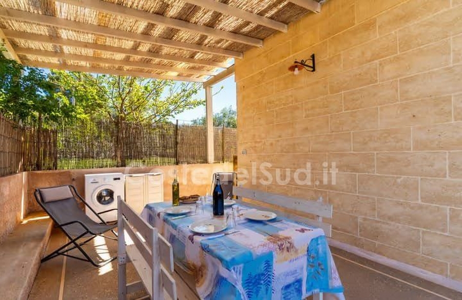 Splendido bilocale in collinetta a soli 2000 mt dalle splendide spiagge di Pescoluse composto da camera da letto matrimoniale con possibilit? di terzo letto e soggiorno pranzo con divano letto matrimoniale. All'esterno ampi spazi con porticato in legno, doccia e barbecue per rendere unica la vostra vacanza. Abbinabile con il mono codice 802.Aria Condizionata posizionata nel soggiorno pranzo a richiesta con supplemento