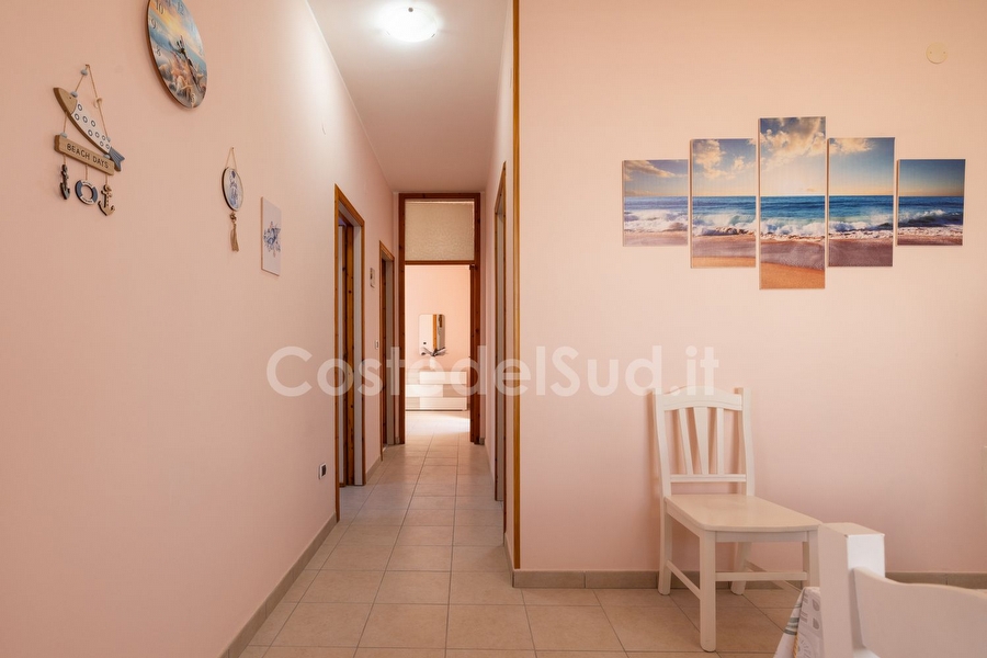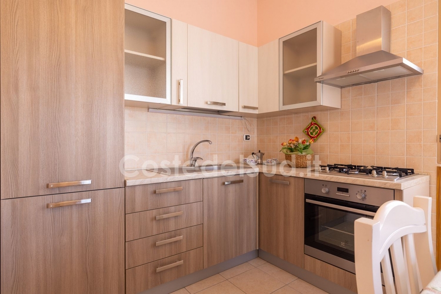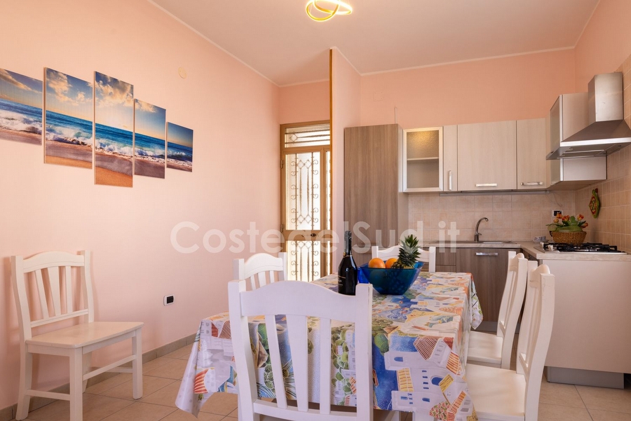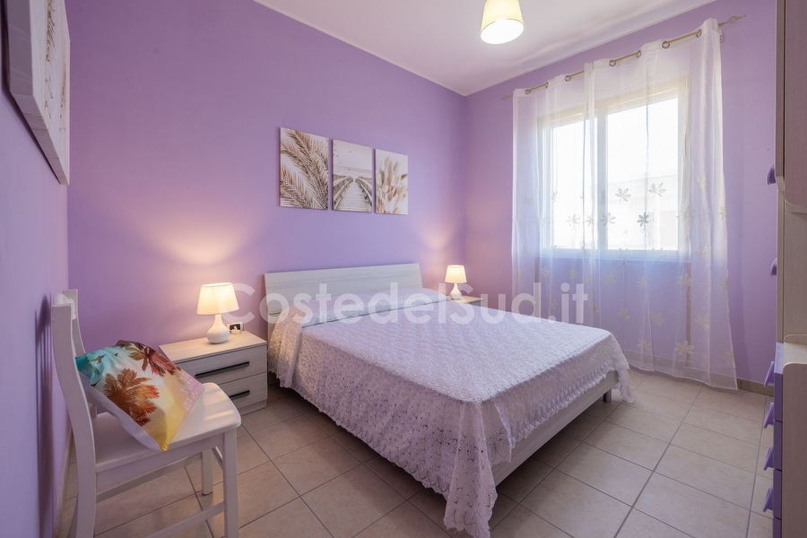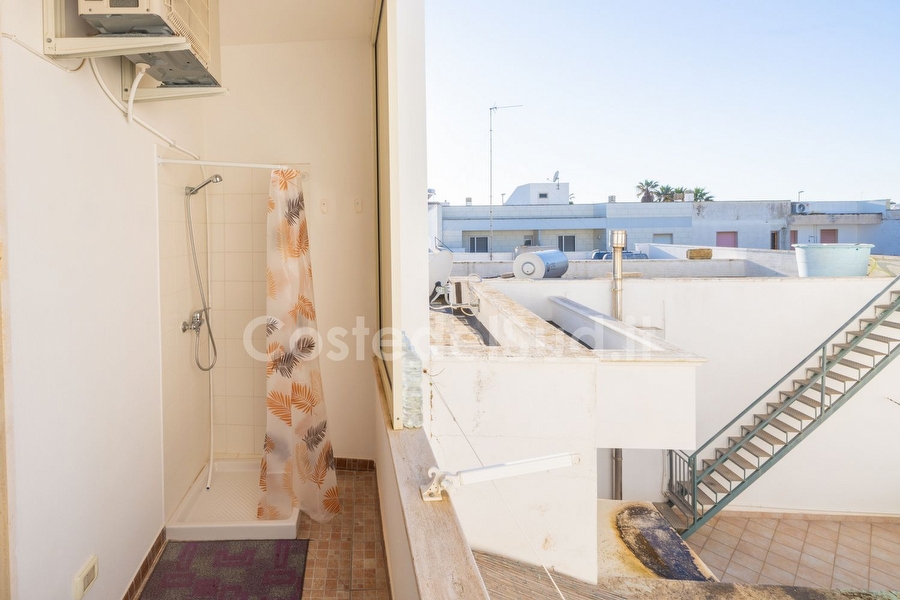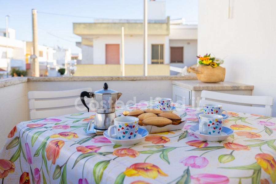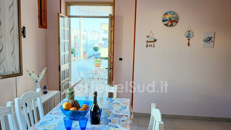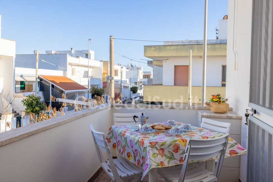 Appartamento ben arredato, situato in una delle piu' belle localita' sabbiose Salentine . L' abitazione trovasi in posizione favorevole, tanto che una volta raggiunta e' consigliabile mollare l'auto e dedicarsi completamente alla vacanza, poiche' a piedi ed in pochi minuti, e' facile trovare sia i lidi sabbiosi che le scogliere basse, esercizi commerciali, ristoranti, bar e passeggio serale, con continui spettacoli e sagre paesane. Avendo poi, altro tempo a disposizione, si possono visitare ( a pochi chilometri di distanza ) le piu' importanti localita' ionico salentine, da Santa Maria di Leuca a San Gregorio, passando da Torre San Giovanni, sino a raggiungere Gallipoli. Appartamento composto da cucina-tinello, tre camere da letto e bagno. I climatizzatori sono due, uno nel soggiorno e l'altro nella camera matrimoniale. Le camere sono due con letto matrimoniale e una cameretta con due lettini. Il bagno e' completo con box doccia. E' presente la lavatrice. Gli spazi esterni sono due: un balcone antistante provvisto di tavolo e sedie da giardino e tenda da sole e il secondo con box doccia esterno, stendino e utile pilozza. A completare gli spazi ? l'ampia terrazza vista mare provvista di sdraio.