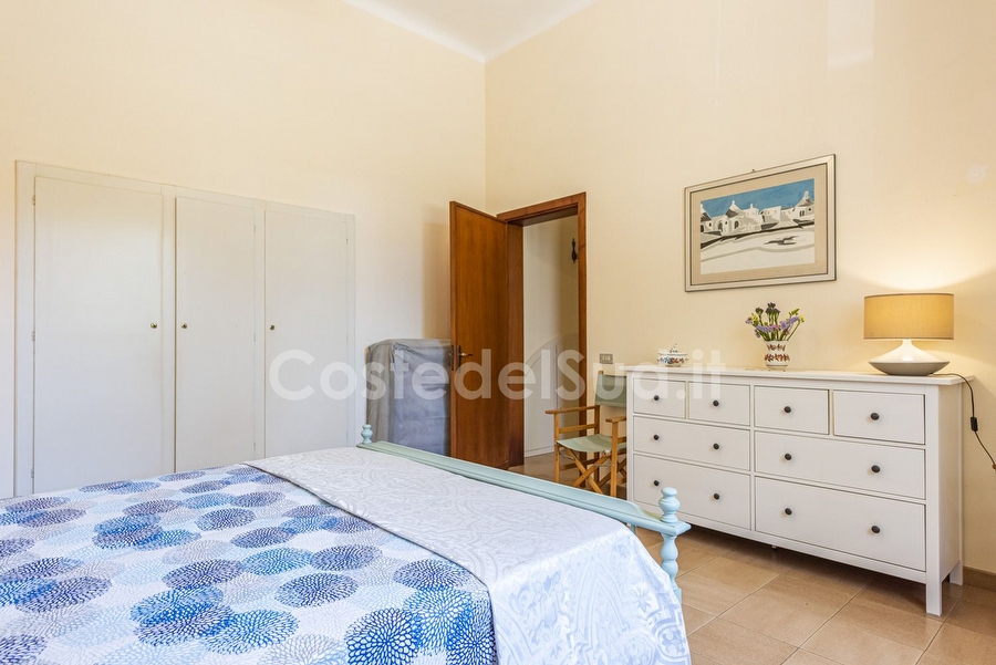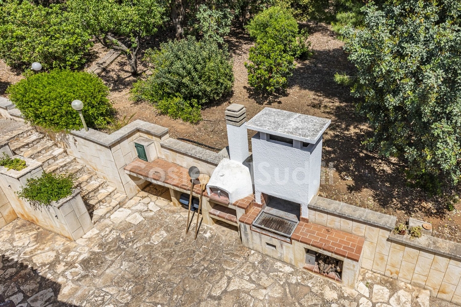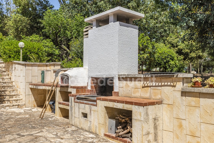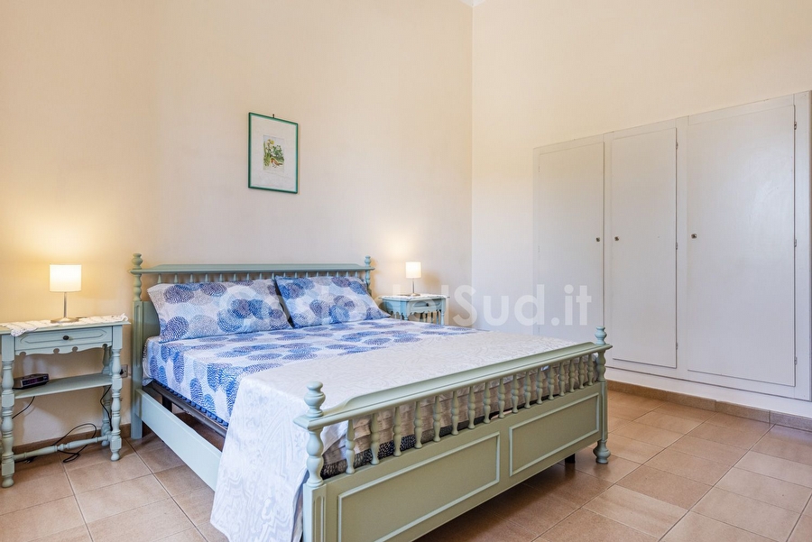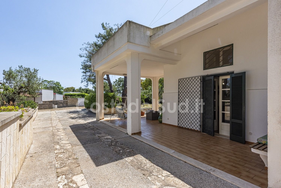 Villa immersa nel verde , tranquillita' e privacy. Ampi spazi esterni e grande patio attrezzato coperto. Posti auto privati. Adatta a 2 famiglie. La costruzione non recente ma ben tenuta e' immersa nel verde lontana dal traffico e dai rumori della cittadina. Ampi spazi esterni con albero ad alto fusto e angoli con cespugli e molteplici fiori. Gli interni sono organizzati da un grande e vivibile soggiorno, dove oltre al tinello e presente un divano letto matrimoniale. Alloggio non adatto a portatori di handicap, in quanto all'interno vi sono gradini per accedere nella zona notte. Le camere sono 3 , tutte matrimoniali. Gli splitter sono 2, uno che rinfresca la parte notte e posizionato nel disimpegno ed un altro nel soggiorno. I bagni sono 2 , uno completo, mentre il secondo senza doccia. Comunque sono presenti 2 docce all'esterno. Zona barbecue ben attrezzata e grande con relativo forno. Campo di bocce. Scala di accesso al solarium ( non attrezzato). La zona giorno e protetta da zanzariere. Oltre alla possibilita' di noleggiare delle bici , noleggiatore raggiungibile a piedi dalla casa, si puo' raggiungere a piedi il centro. IL centro di Torre San Giovanni offre diverse soluzioni per mangiare bene e veloce. Ristoranti e pizzeria sono innumerevoli. Si consiglia di raggiungere la spiaggia di sabbia in auto oppure con le bici.