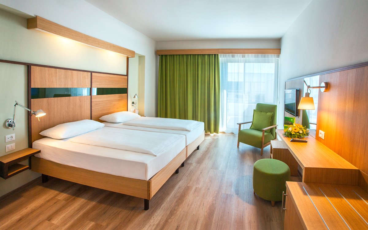 di tipologia Standard, tutte dotate di ampio balcone o patio, aria condizionata regolabile autonomamente, telefono, minifrigo, cassaforte, Tv sat, servizi con asciugacapelli.
