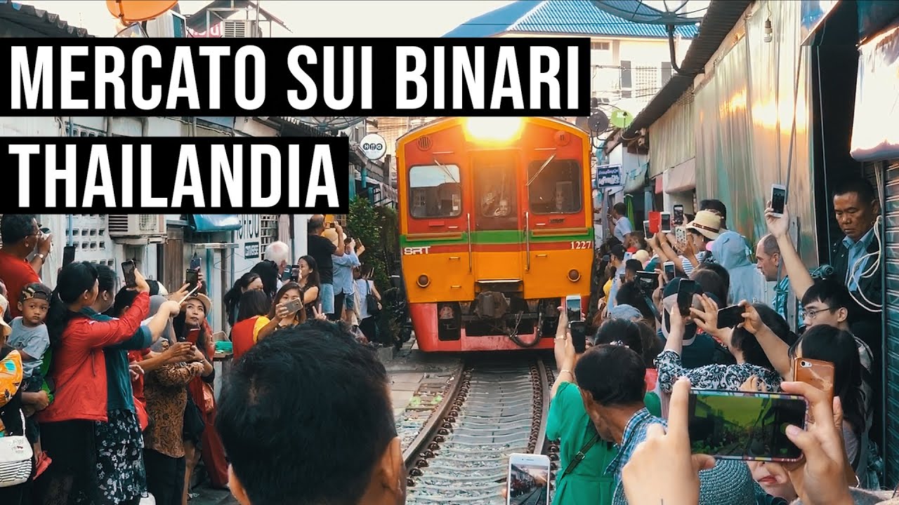 Thailandia treno di Maeklong che passa nel mercato